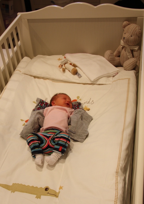 Here Matilda is trying out her own bed for the first time. Seems to be room to grow…